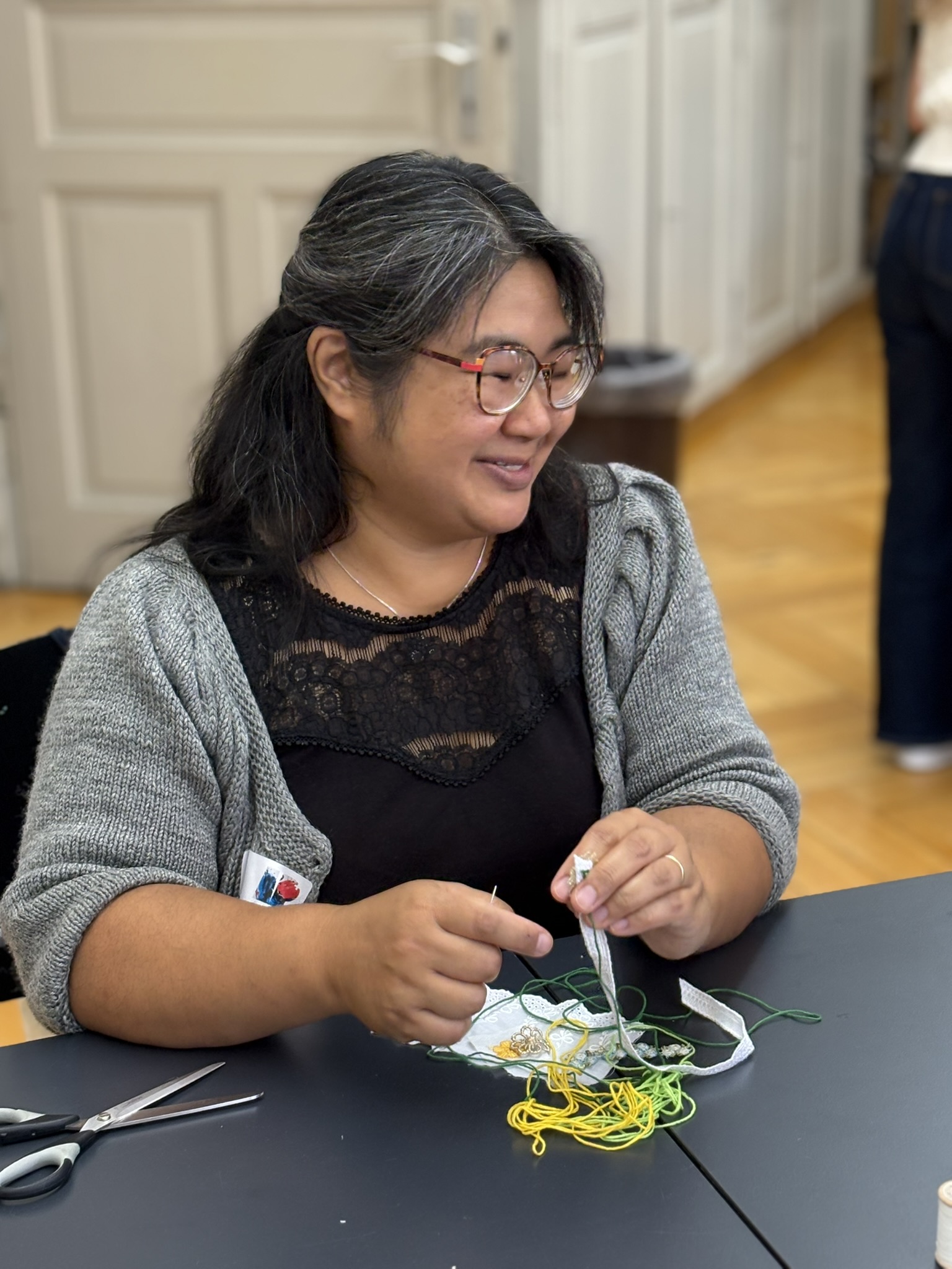 Nach einer spannenden Führung hinter die Kulissen, bei der die faszinierende Welt der Textilkunst hautnah erlebbar war, ging es richtig kreativ weiter. In einem Workshop konnten alle selbst aktiv werden, Ideen austauschen und ihre eigenen kleinen Meisterwerke gestalten.
